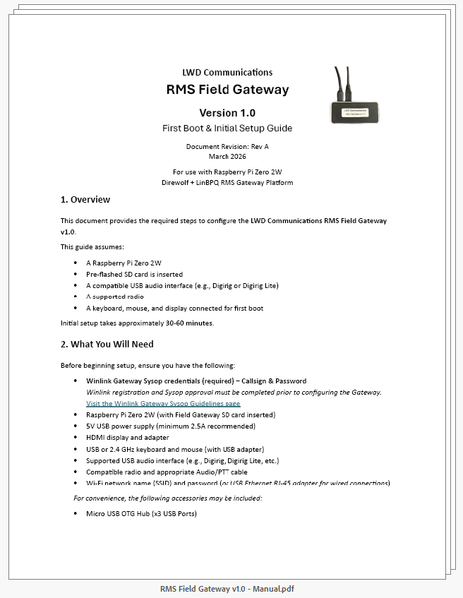 The RMS Field Gateway v1.0 is delivered with comprehensive, structured documentation reflecting the exact configuration shipped.